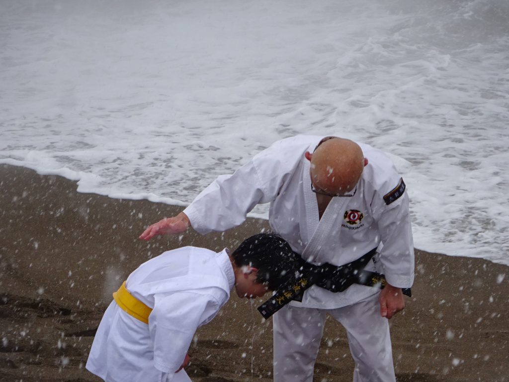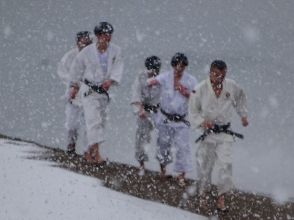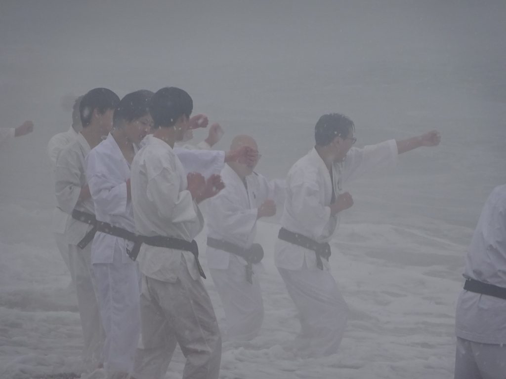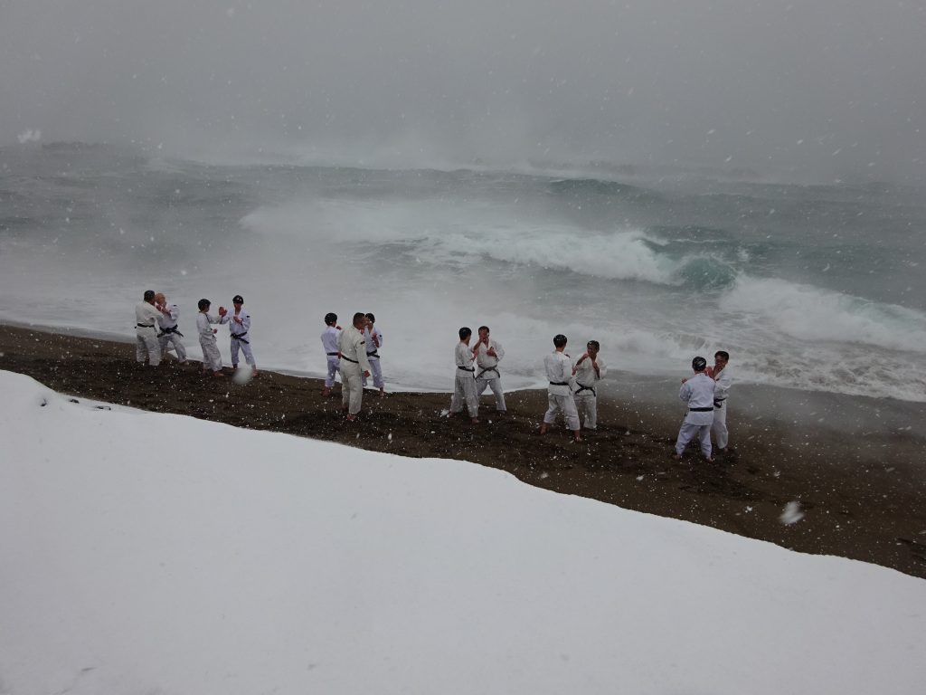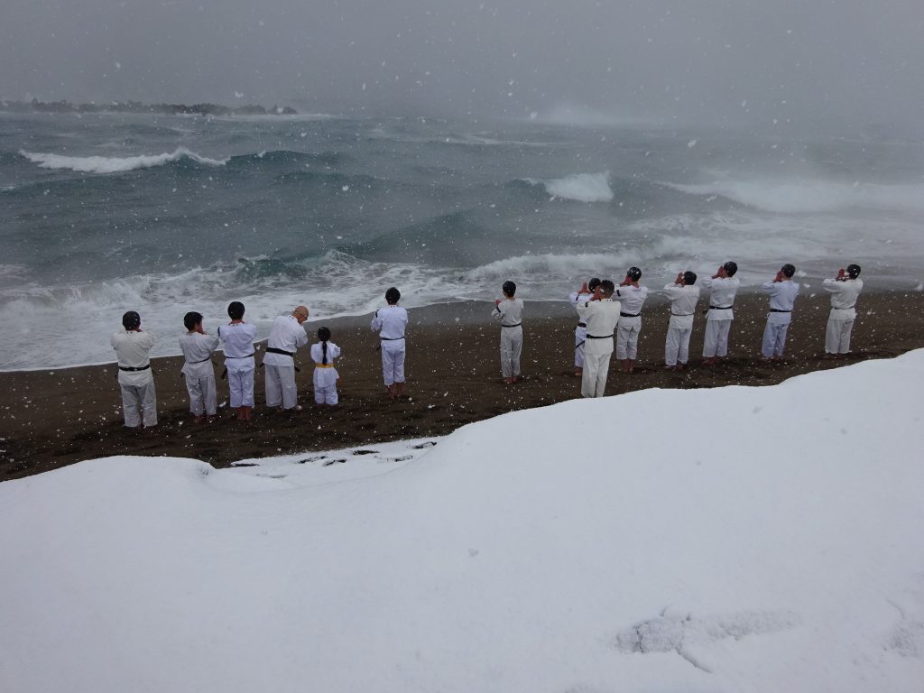 2026年 寒稽古雪ふりつむ 未分類 2026.01.09 2026.01.04 1/2 鷹巣海岸は一面の雪景色40数年の寒稽古の中でこんな景色は3回くらいしかありません。風雪強く、波は逆立ち人を寄せ付けないほどの厳しさ。そんな中福井市小教区の拳士、有志があつまりました。6才から70代まで今年1年の思いと願いを大海に向かって誓い、心と体の修練に向き合う意気を示します。身体のつらさは一場、心が折れてはいけません。自己の確立こそ大切な一歩と思いましょう。 だいじょうぶ・・ いっしょにのりこえよう